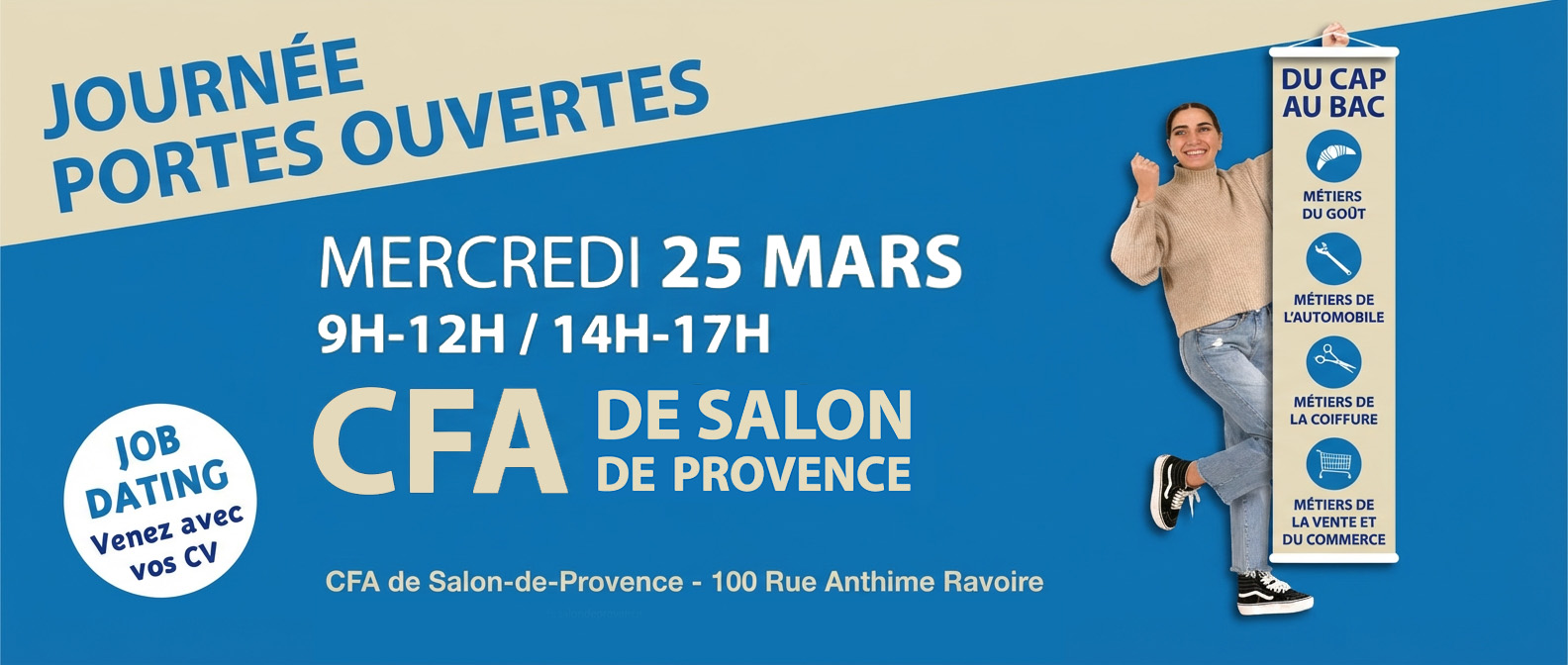 Centre de Formation d’Apprentis 100, Rue Anthime Ravoire - 13300 Salon de Provence / cfa@salondeprovence.fr / Contactez nous au 04 90 56 07 83